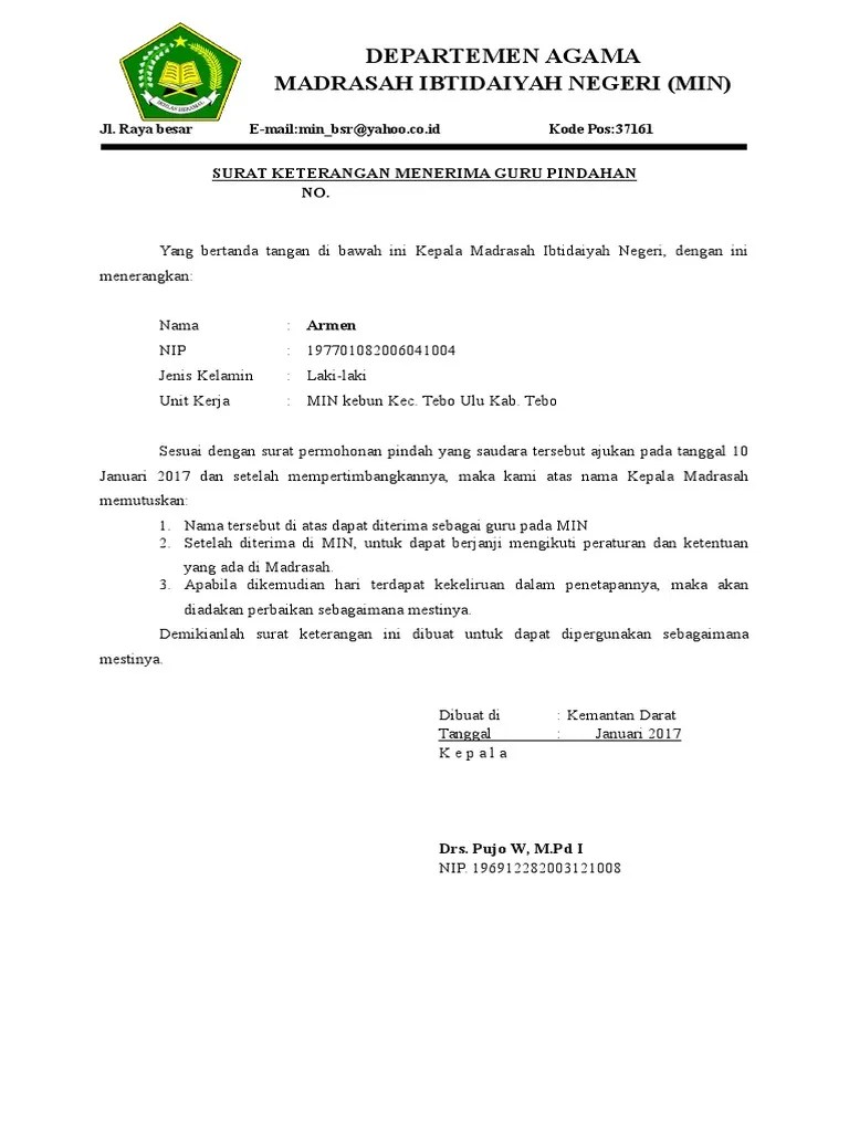 Surat keterangan diterima merupakan jawaban dari surat keterangan pindah surat ini dikeluarkan oleh sekolah yang menerima siswa pindahan yang . Simak contoh surat keterangan diterima menjadi siswa baru di sekolah sd paling lengkap. Secara terperinci dikatakan pengertian surat sebagai . Inilah surat keterangan diterima dari sekolah yang dituju. Contoh surat resmi gotong royong pendidikan dasar guru belajar. Doc uptd sd negeri bator 2 kecamatan klampis . Berbagai informasi mengenai surat keterangan diterima di sekolah doc. Surat pernyataan peserta didik baru. Kali ini admin akan membagikan contoh surat keterangan bersedia atau. Yang bertanda tangan di bawah ini : Republik indonesia yang menangani bidang pendidikan dasar dan menengah. Surat keterangan diterima, merupakan jawaban dari surat keterangan pindah , surat ini dikeluarkan oleh sekolah yang menerima siswa pindahan. Yang bertanda tangan di bawah ini kepala sekolah dasar negeri.
